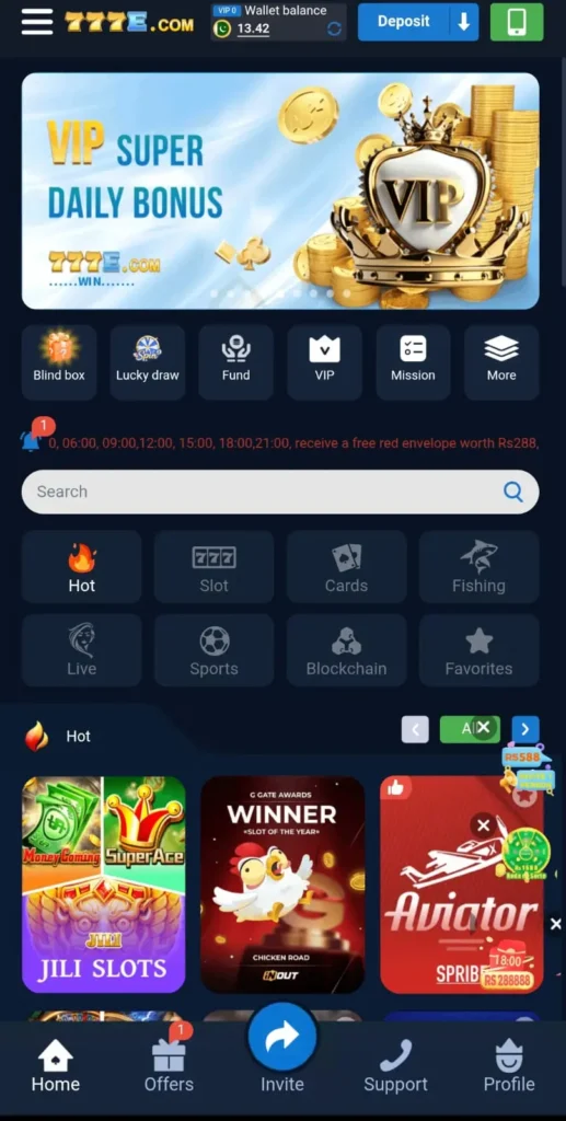 Since 777E App is not only about playing but also about earning, deposit and withdrawal features are an essential part of the platform. The process has been made simple and secure.
