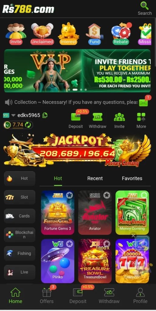 RS786 App is an online real-cash gaming application where users can play different games and win rewards instantly. It’s a multi-game platform that combines fun and income in a single app. From classic card games to modern slot machines and live challenges, RS786 casino offers a wide variety of choices for everyone. Unlike traditional online casinos, RS786 App focuses on fair play, transparency, and convenience. The app’s layout is designed for easy navigation so that even beginners can start playing without any difficulty. You can download the app directly from its official website, register with your mobile number, and start playing instantly.