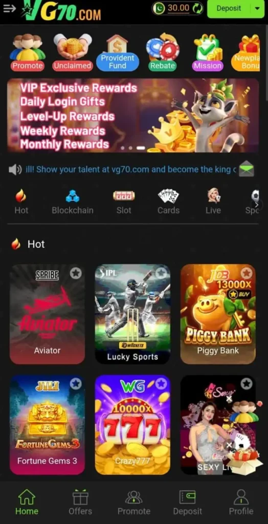 VG70 App provides access to a variety of games, so players always have something fresh to try.
